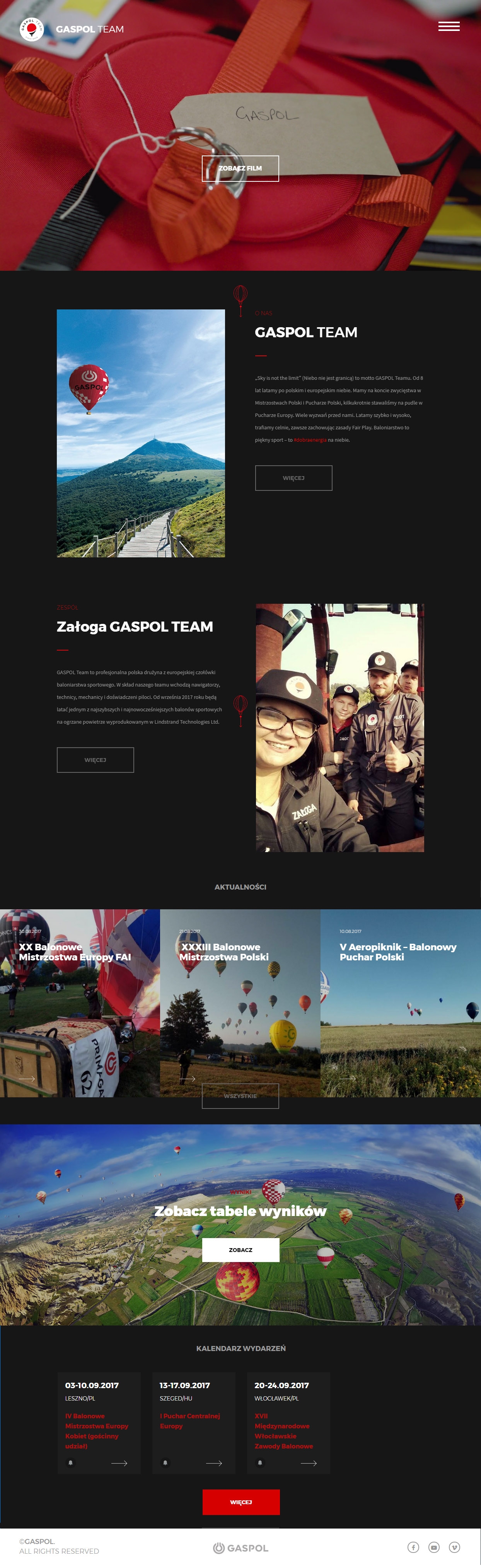 Dla zespołu GASPOL Teamu uprawiającego sport balonowy stworzyliśmy stonę, na której prezentowane są wyniki, zdjęcia i wydarzenia z życia zespołu. Strona została nominowana do Best Site Awwwards.
