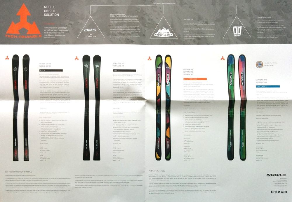 Folder dla Nobile Skis. Prezentacja firmy i kolekcji.